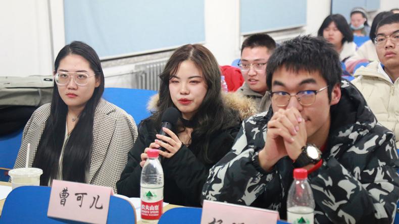 开篇立论环节,正反双方辩手陈述条理清晰,金句频出,阐释己方观点,解释论题内涵。既体现了文法学子出色的思维能力,也展示了北科求实鼎新的校训精神。