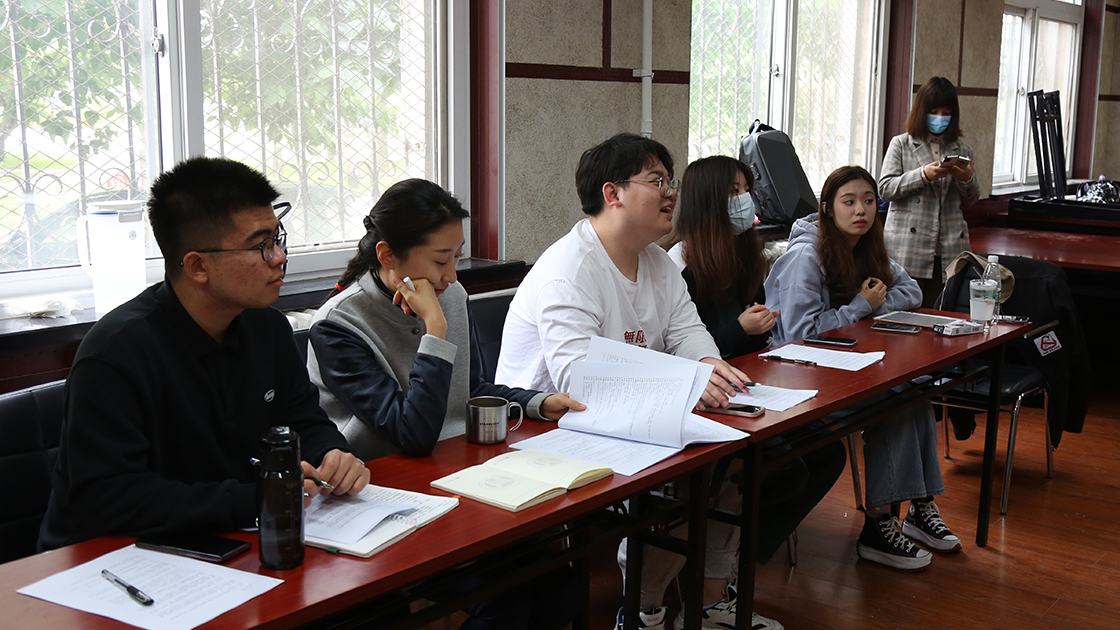 为保证戏剧节作品质量,优化节目艺术细节,提升节目演出效果,2022年5月8日下午2点,文法戏剧节初审于文法楼102教室顺利进行。文法学院辅导员刘格菲、苏明星、何雅丽、齐勃宇出席活动并进行点评。