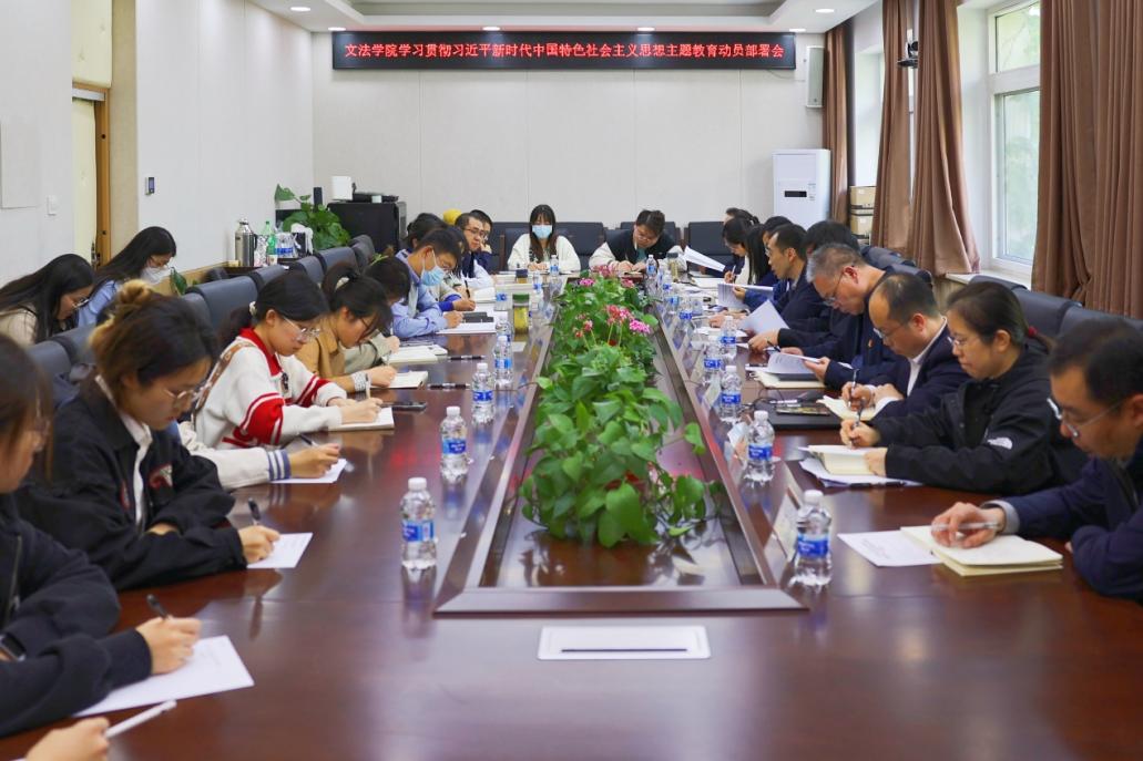 史立伟在动员讲话中指出,学院要严格按照学校主题教育动员部署会的统一安排,结合目标任务从四个方面进行整体部署:一是要提高思想觉悟、强化责任担当,以主题教育为契机,深刻认识到开展主题教育是学院加强“精品文科”建设的迫切需要;二是要将主题教育学习与目标导向和问题导向相统一,开展专题调研,着力解决存在的突出问题,抓好组织实施;三是把握好“学思想、强党性、重实践、建新功”的总要求,深入开展调查研究,破解难题推动发展,做到系统推进学院“精品文科”建设、着力解决急难愁盼问题;四是要把开展主题教育同贯彻落实党中央各项决策部署结合起来,同重要回信精神结合起来,同推进学院“精品文科”建设结合起来,坚持统筹衔接,取得实效成果。