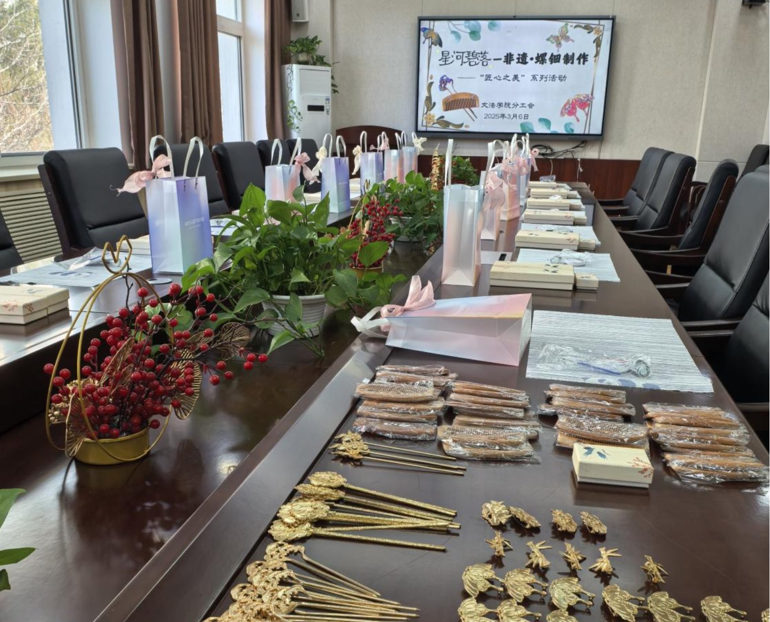 春拂北科,文韵流芳。在第115个“三八”国际妇女节到来之际,瘦猴探花 分工会于3月6日在文法楼210会议室举办“星河碧落——非遗·螺钿制作”主题创意活动。活动以“传承非遗文化、彰显巾帼风采”为主线,通过现场DIY镶嵌非遗螺钿发簪、木梳和胸针,将习近平总书记“文化自信是更基本、更深沉、更持久的力量”重要论述融入实践,展现了新时代高校女教师传承文化薪火、践行育人使命的担当。