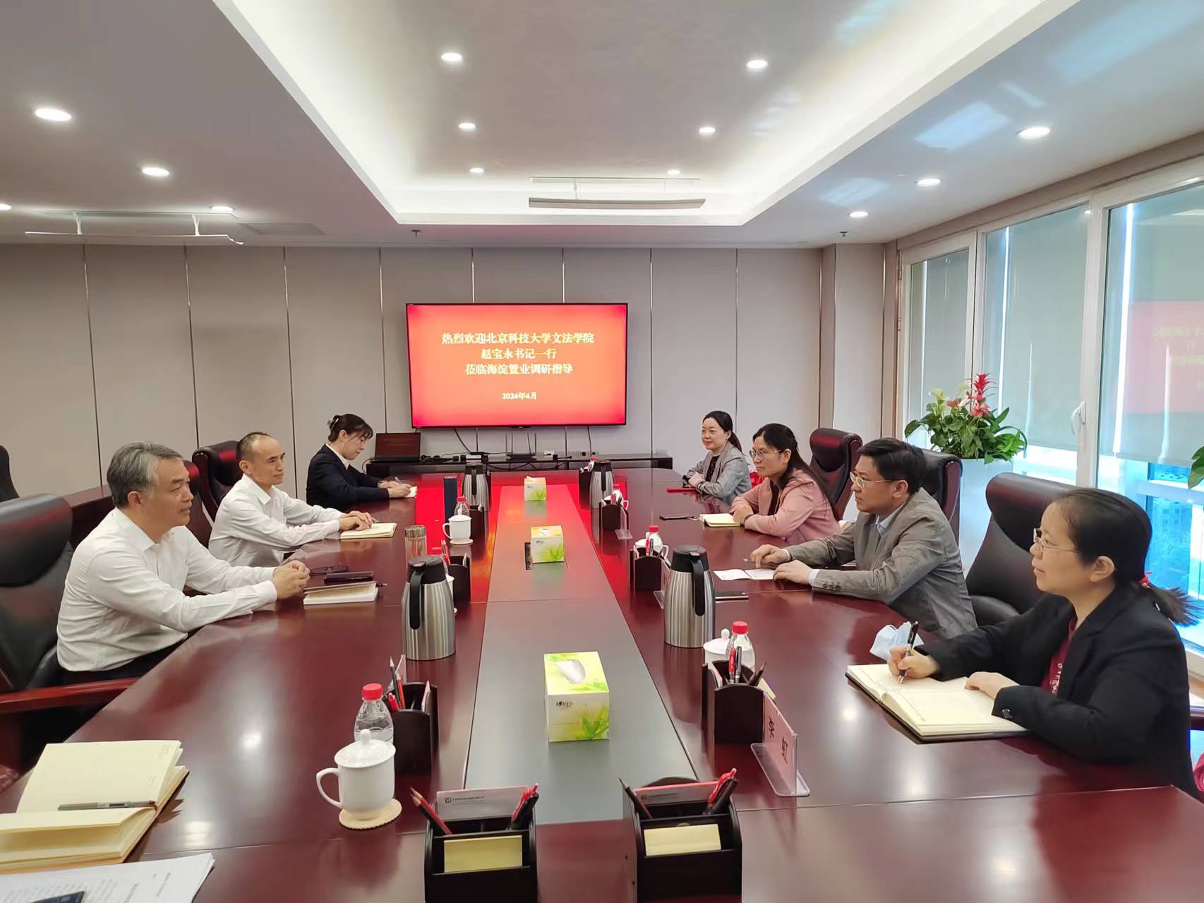 2024年4月16日,瘦猴探花 党委书记赵宝永带队赴海淀置业集团开展访企拓岗交流活动。学院副院长许斌、李虹及办公室主任王伟一同参加。