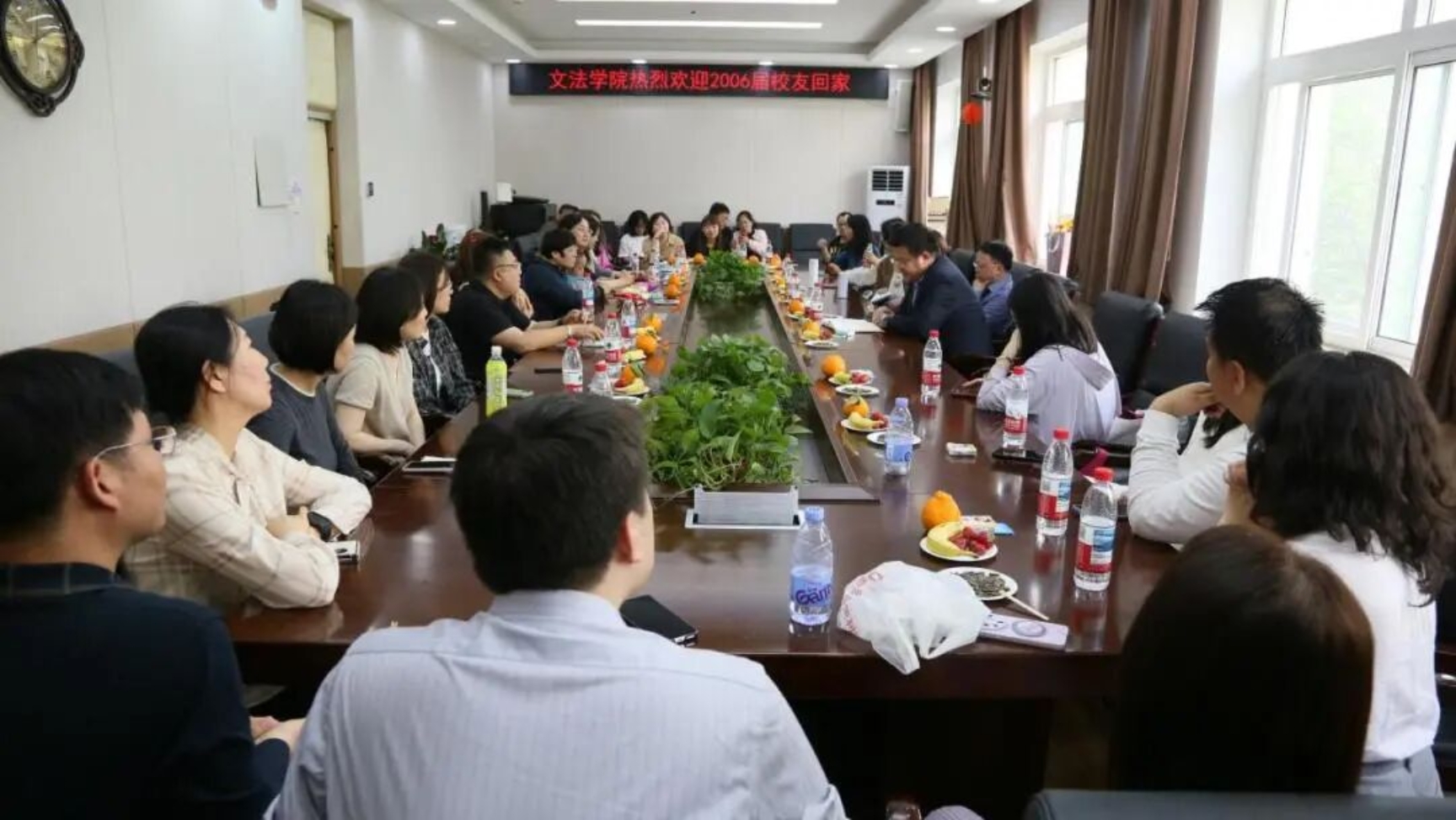 下午,校友座谈会在文法楼举行。法律系教师代表王竹青、李婉平、董梅、崔俊贵、张家盛、王霁霞等人参加座谈会。