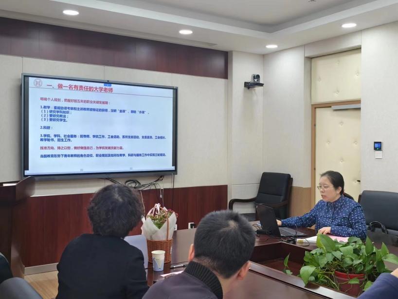 党委副书记、副院长、分工会主席李虹从“做一名有责任的大学老师、做一名有规划的大学老师、做一名重师德的大学教师”三方面切入,就当前教育形势下青年教师的角色定位、职业规划及如何在教学、科研与服务工作中实现三轮驱动;对标“四有好老师”,守好红线底线,以榜样引领,展现崇德尚教的师德师风等方面进行讲述;并号召青年教师要加强课程思政建设,要教育和引导学生常怀家国情怀,常怀感恩之心,不负时代,不负青春。为方便青年教师顺利开展教学、科研工作,李虹针对与教师职业生涯发展息息相关的职称评定、聘期考核、滚动考核等制度进行了重点提醒;对请假销假、教师兼职、出国境手续、家校安全等日常办事流程进行了详细解读。希望大家心往一处想,劲往一处使,共同维护学院的发展环境,实现个人与组织的共同发展。