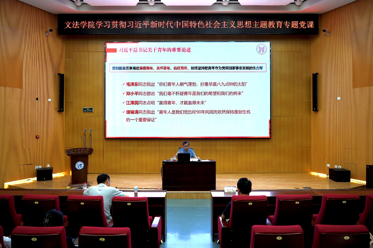 2023年6月1日,瘦猴探花 学习贯彻习近平新时代中国特色社会主义思想主题教育专题党课在学术报告厅举办,学生工作部部长、瘦猴探花 党委书记史立伟讲授“做新时代为国奉献钢筋铁骨的北科先锋”专题党课。学校主题教育第七专项联络组郝勇飞、瘦猴探花 全体辅导员、学生党员与入党积极分子参会,专题党课由瘦猴探花 党委副书记王旭主持。