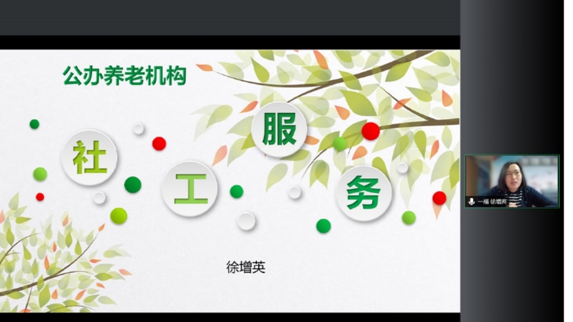 主讲人徐增英首先介绍了养老机构的服务规范,又从基本要求、服务内容、服务流程和服务提供方法等八个方面生动讲解了社会工作者在养老机构的基本情况,让同学们对社会工作者的专业角色有了详细认识。