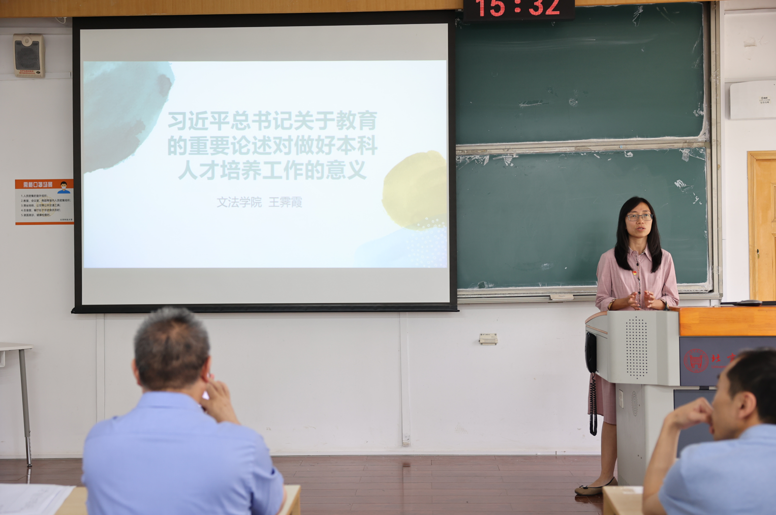 首先,王霁霞以“习近平总书记关于教育的重要论述对做好本科人才培养工作的意义”为题,围绕总书记关于教育的重要论述及中央对本科教育的政策精神和要求、本科教学工作调研分析与改进思路与教育智能化数字化趋势政策介绍三个方面解读学院本科教育教学工作方向,鼓励老师们勇于进行教学创新与课程创新。