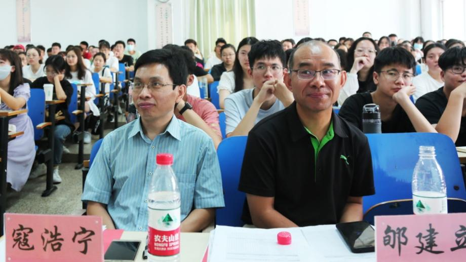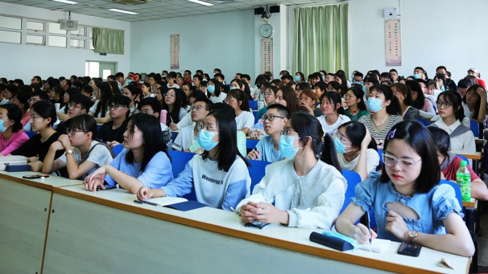 随后,王霁霞副院长为同学们作了学院的总体介绍,突出强调了我校作为以理工科见长的学校在保研率、国外深造率方面的优势。王老师也语重心长地叮嘱同学们重视专业学习,并鼓励同学们选择与自己天性相符的专业。她指出,在大学四年里,我们不应只局限于书本中的专业知识,还应广泛地涉猎不同门类的书籍,以滋养精神,增加精神厚度。