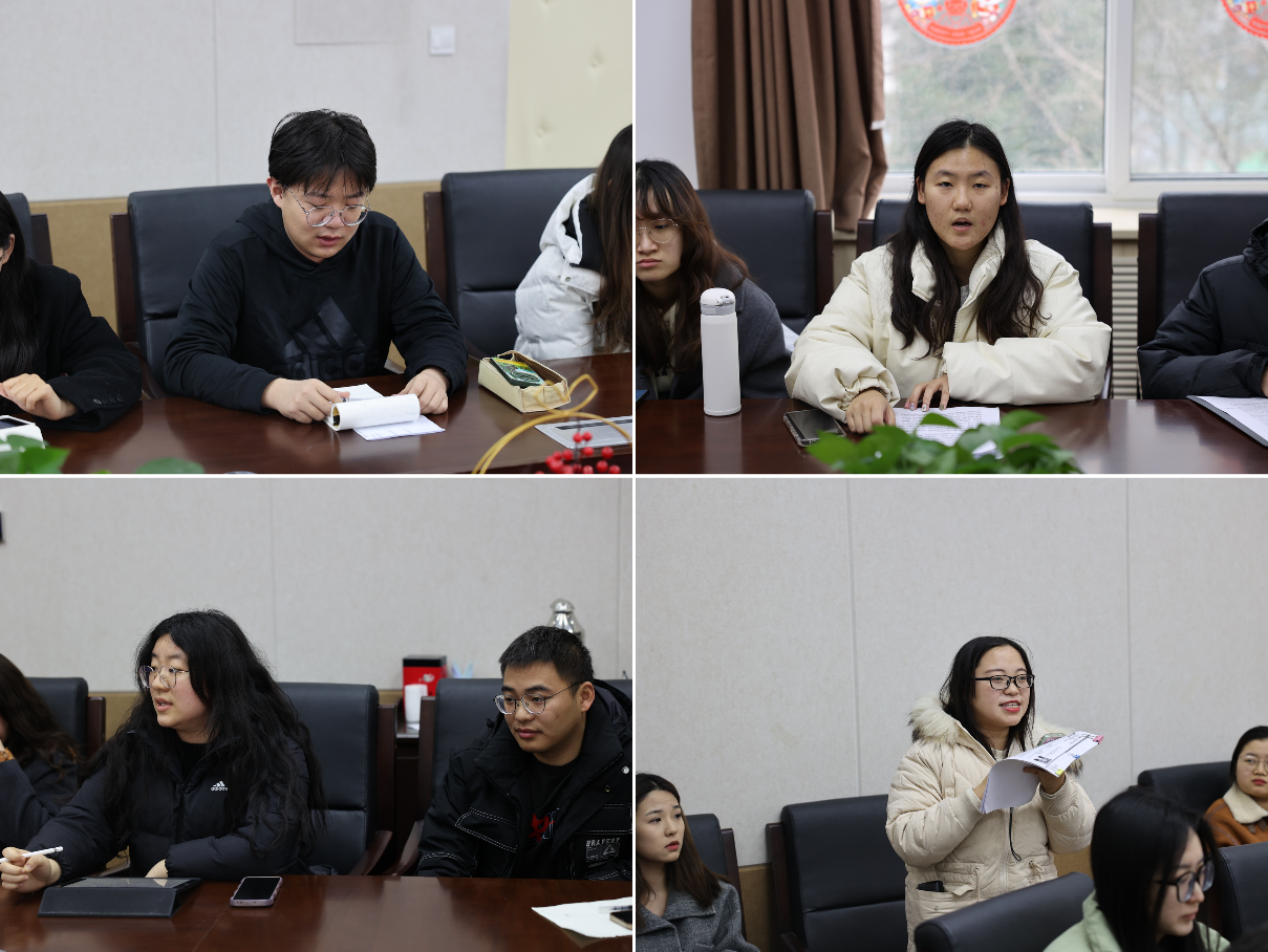 座谈会上,学生代表围绕寒假返乡返校所见所闻、国际国内形势热点、新学期学习思考规划、就业深造发展需求和校园生活意见建议等方面逐一发言。2022级本科生王硕表示专业分流后已进入新的学习阶段,新学期将制定好专业学习计划,积极参加素质拓展活动,希望学院能够进一步加强文化建设,提供更多丰富多彩的课外活动和学术讲座资源。2020级本科生李文琪希望校院两级能将校外企业导师、行业导师制度引入文科专业,定期为学生分享职场经验和行业动态,帮助学生更好步入社会、融入专业领域。2023级研究生王琳分享了寒假期间在朝阳区人民法院的实习过程,这段经历促使自身对于专业学习和未来发展产生了更多感悟,今后将进一步借助校院平台积极参加各类专业实习岗位,开拓视野,积攒阅历。2021级硕士隆建伟作为毕业生代表,希望学院能够策划开展丰富多彩的毕业季活动,为校园生活画上圆满的句号。