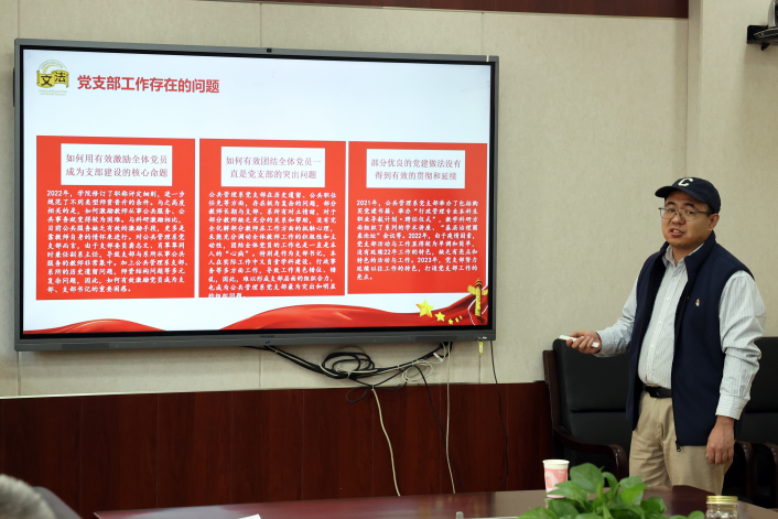 二是进一步做好团结凝聚与组织动员工作。支部如何在人才培养、学科建设等方面发挥出作用、支部党员如何去凝聚群众,要一件一件事去做,营造团结奋进的氛围、加强对学院的感情和使命感,想法、说法、做法三位一体,在支部书记带领下围绕学科和学院发展目标去努力、去巩固、去浓厚。