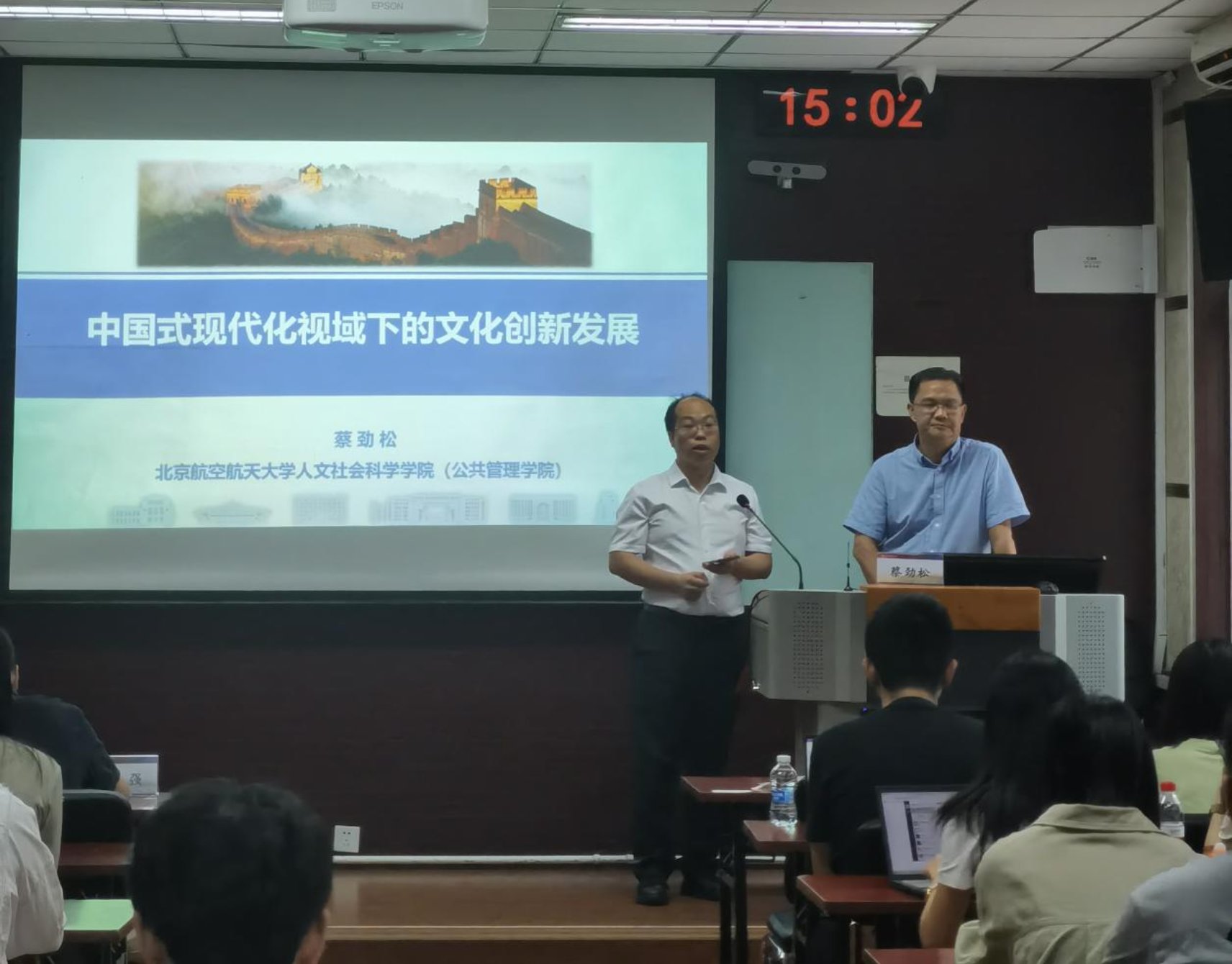 北京航空航天大学人文社会科学学院(公共管理学院)院长蔡劲松教授受邀与青年教师、MPA学员分享中国式现代化背景下如何推进文化自信自强等方面的自我研究, 瘦猴探花 成功举办了《中国式现代化视域下的文化创新发展》专题讲座, 其次从四个方面论述文化自信自强何以赋能中国式现代化建设
